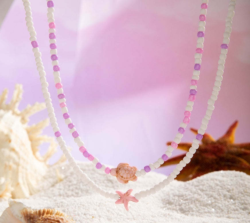 Shop the 2-piece Color Beaded Resin Necklace Set for Women. Features turtle-themed pendants in blue or pink. Lightweight, casual, and perfect for summer style.