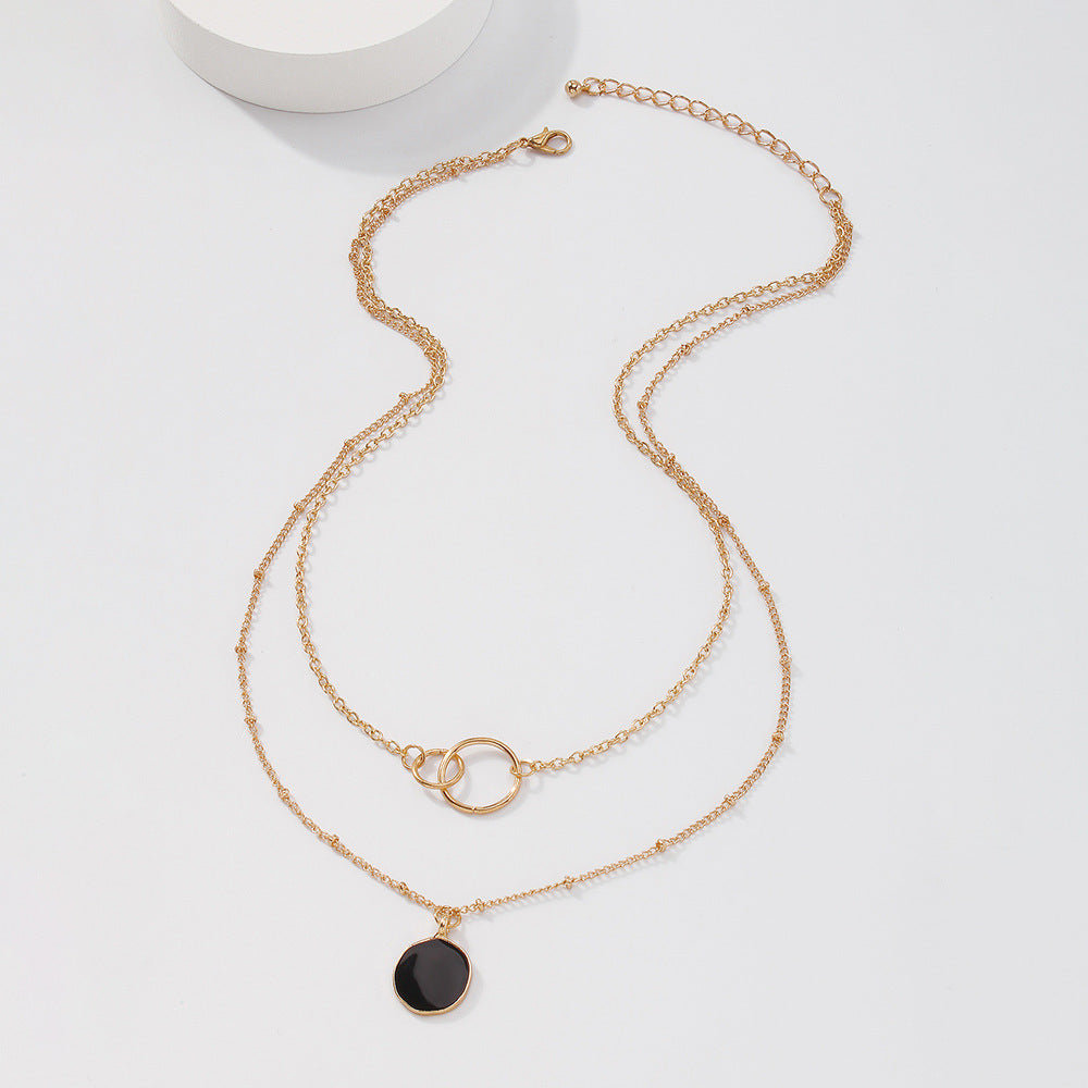 Double-layer clavicle necklace for women with geometric alloy circle pendants and gold dripping oil finish. Adjustable length 21–50cm. Minimalist style.