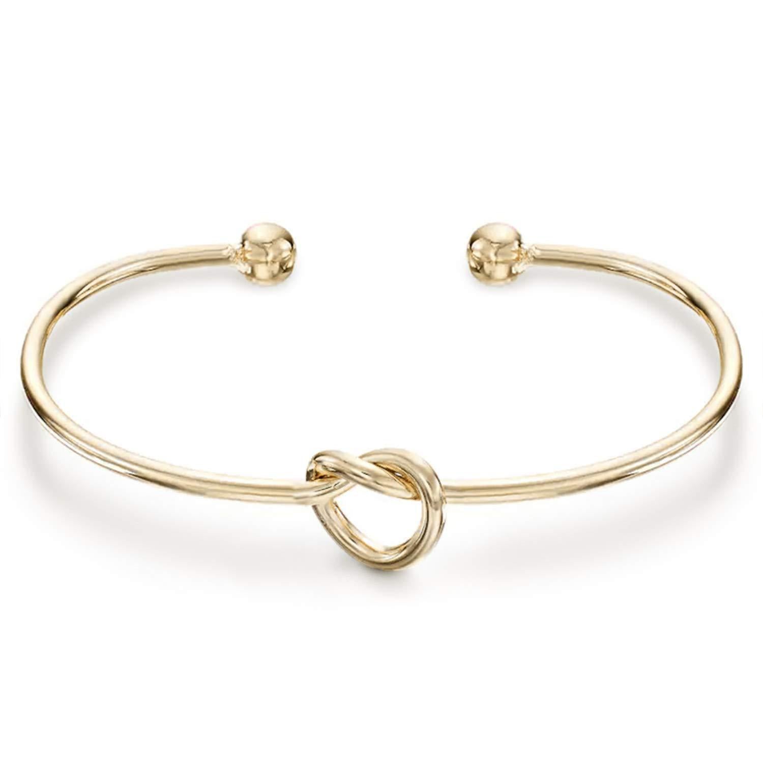 Shop the Elegant Stainless Steel Love Bracelet with twisted flower button design. Available in steel, gold, and rose gold. Stylish open cuff for women.