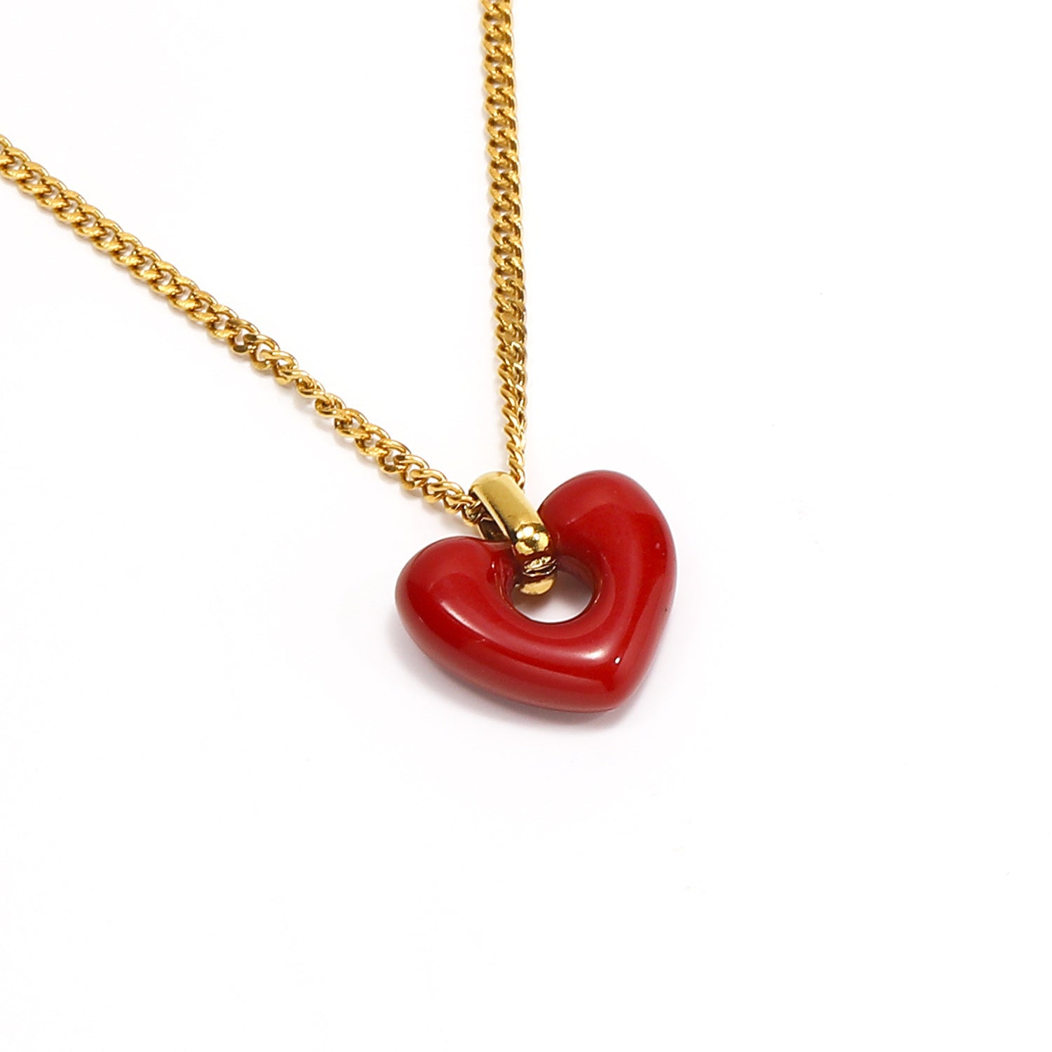 Elegant gold heart-shaped red agate necklace for women. Made of electroplated titanium steel. A perfect romantic gift or everyday luxury accessory.