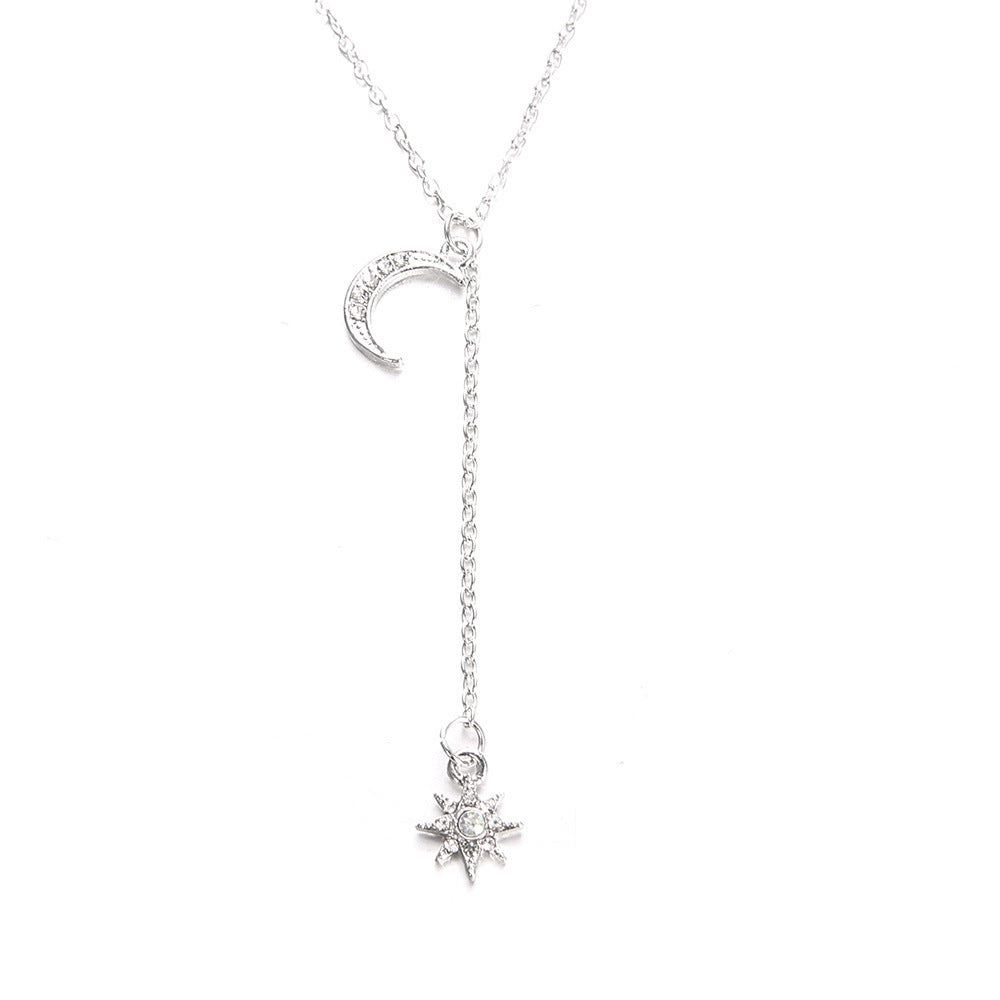 Shop retro moon and sun women’s necklace – gold or silver snake bone chain, European & American celestial design. Alloy, electroplated, 51–80cm length.