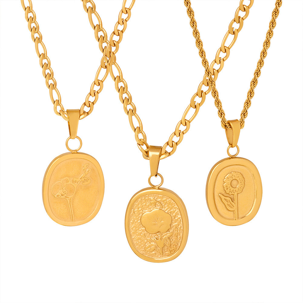 Explore this personalized titanium steel flower pendant necklace with an O-ring chain. Unisex electroplated jewelry perfect for everyday style and gifting.